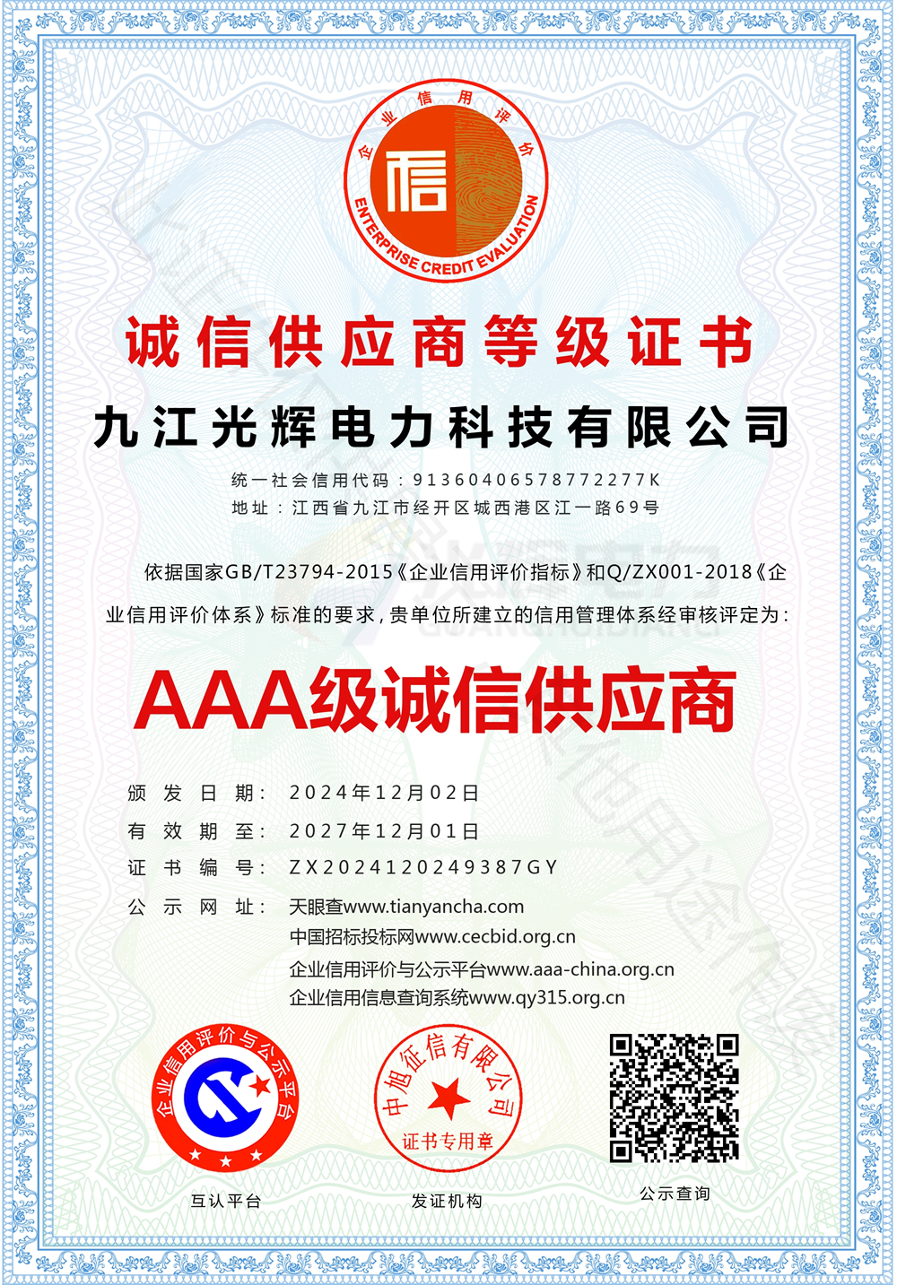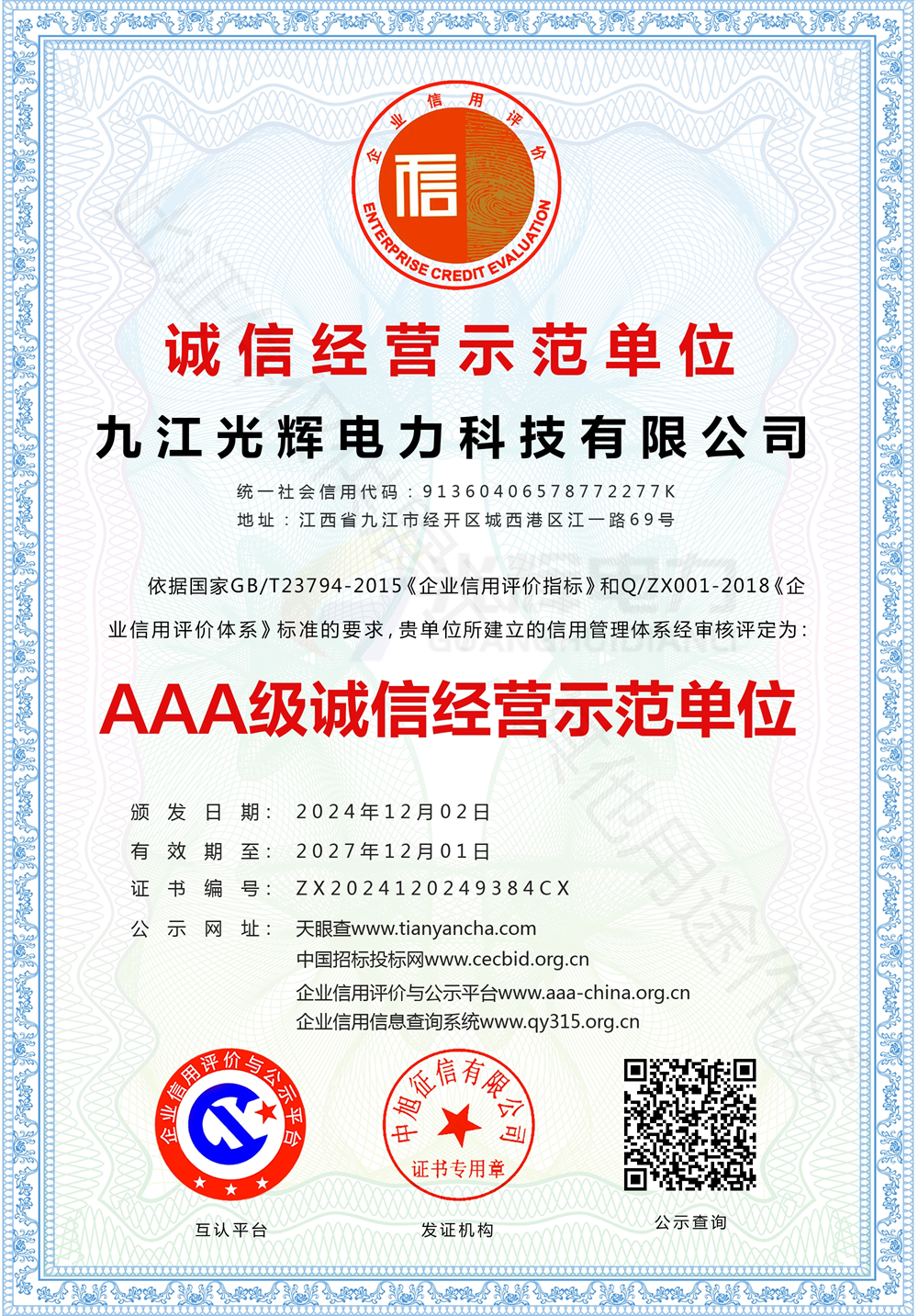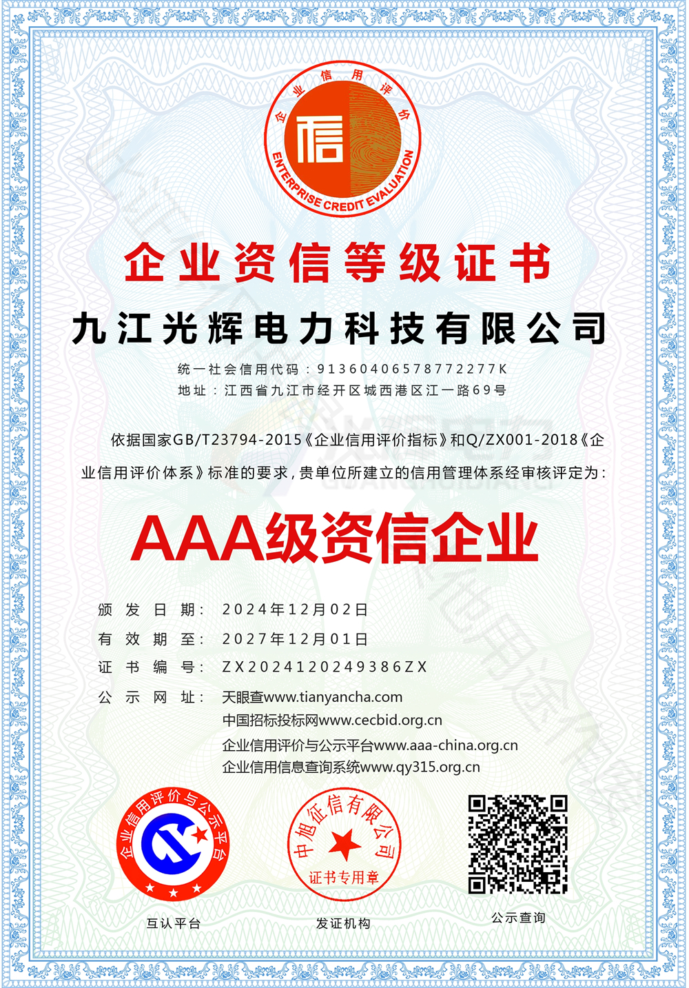 AAA級(jí)企業(yè)信用等級(jí)證書(shū)